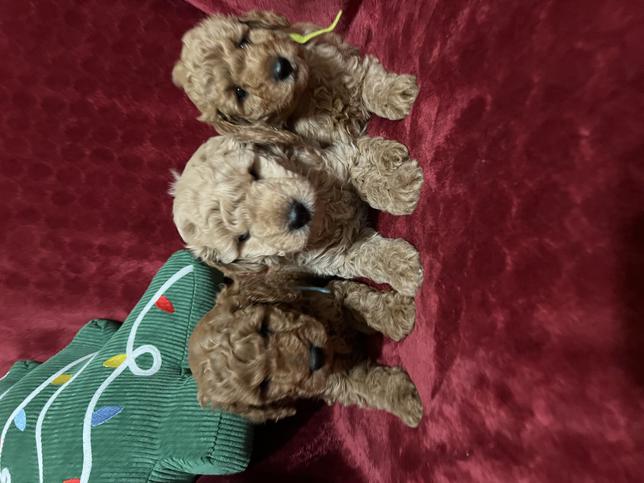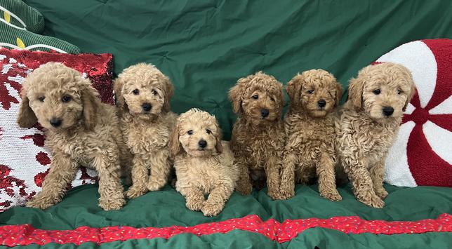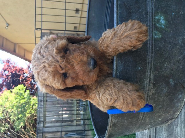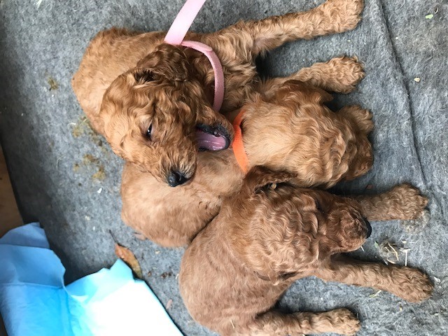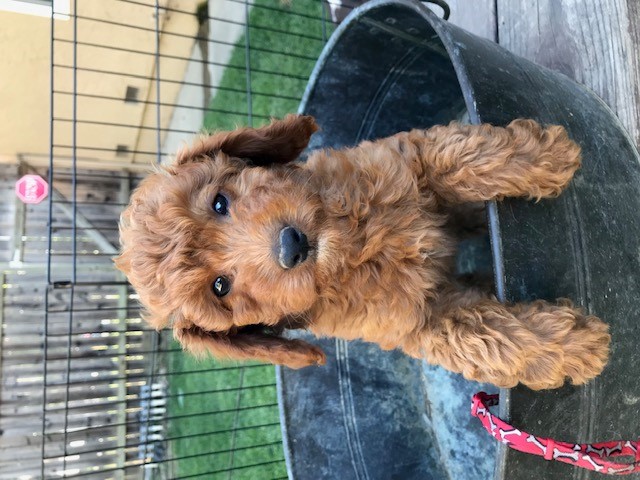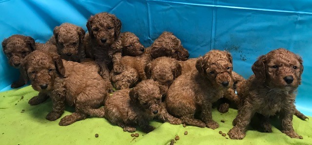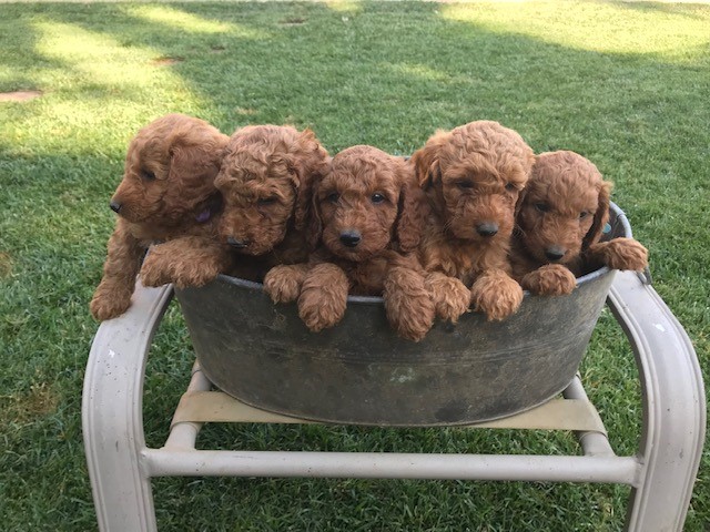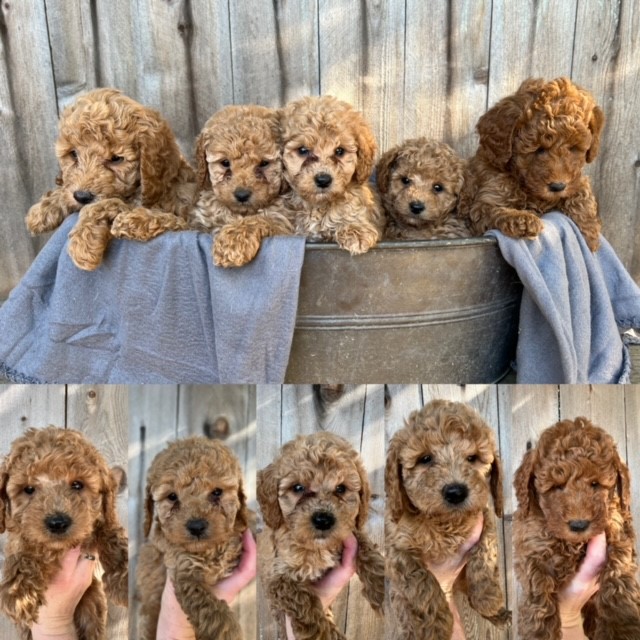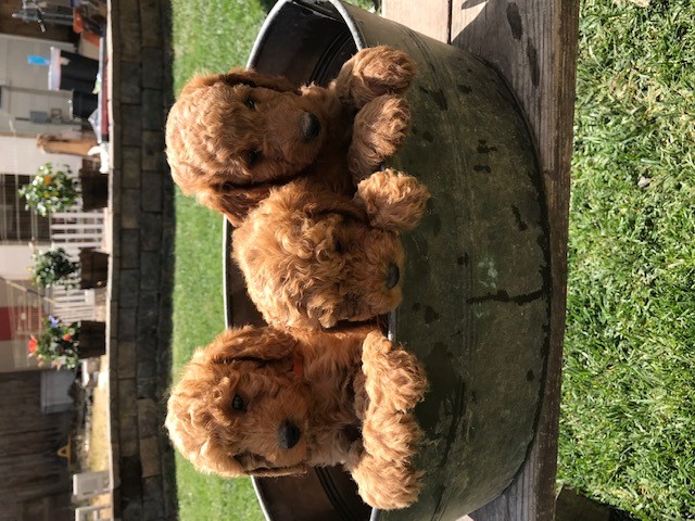 These are Ginger and Kuma's first litter of B eautiful RED Mini F1bb Goldendoodles. These puppies all have homes
