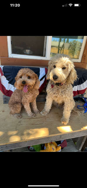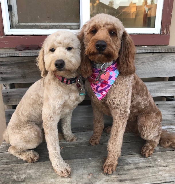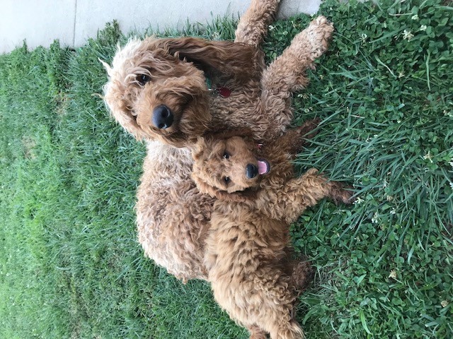Willow, 28lbs Creme Goldendoodle F1b Ginger 38lbs, Red Goldendoodle F1b. Sisters from different litters.