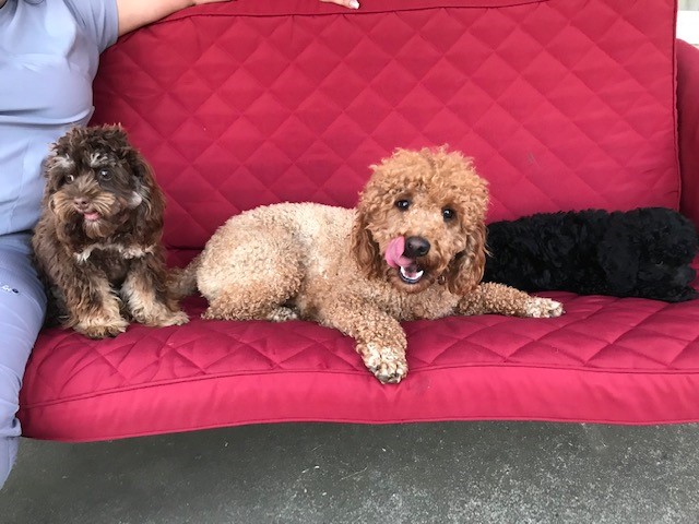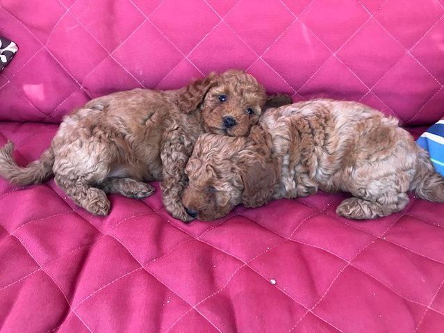 Tobi, father to all my Doodle girls-AKC red mini Poodle, 16 pds Great calm personality Kuma, 6 lbs AKC Toy poodle. Father to Jeter